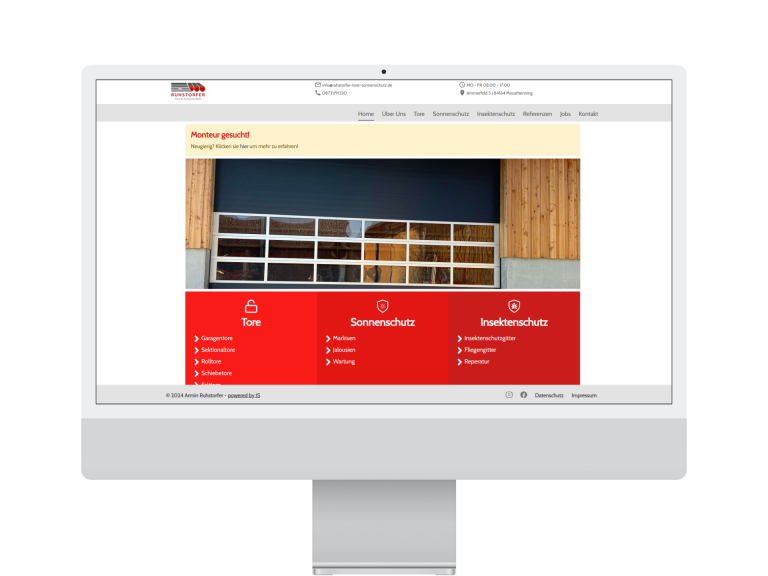 Für einen regionalen Betrieb im Bereich Tore und Sonnenschutz habe ich eine moderne Website umgesetzt, auf der Leistungen und Referenzen klar strukturiert dargestellt werden. Im nächsten Schritt planen wir nun gemeinsam die weitere Digitalisierung – von internen Abläufen bis hin zur besseren Einbindung der Online-Anfragen in den Arbeitsalltag.