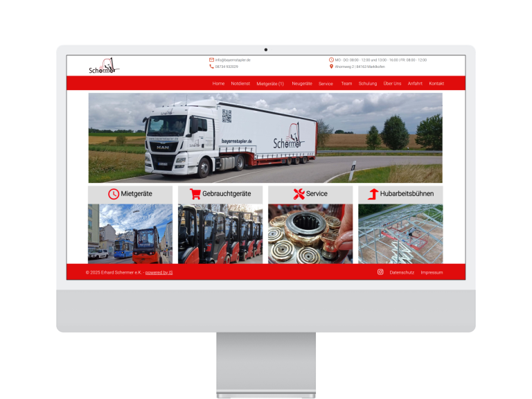 Für eine regionale Staplerwerkstatt habe ich die komplette digitale Basis neu aufgebaut: eine moderne Website, dazu ein übersichtlicher Shop für Miet- und Kaufgeräte. Parallel dazu habe ich die IT im Büro modernisiert und übernehme seitdem auch die laufende Betreuung – alles aus einer Hand.